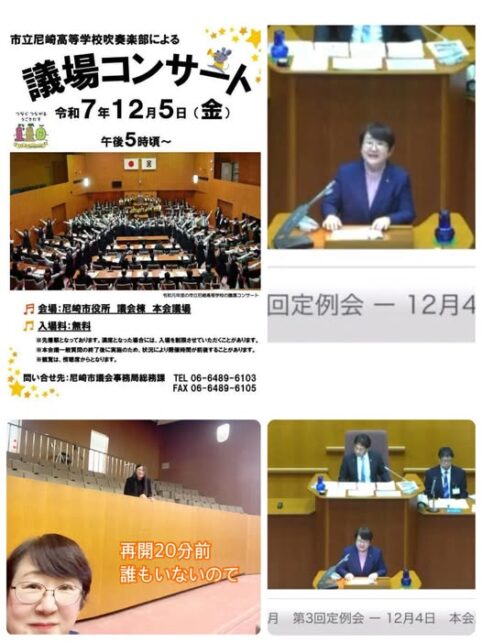 明日12月5日(金)は17時ごろから市立尼崎高校(いちあま)吹奏楽部によるコンサートです。議場で聴く市尼サウンド、ぜひ!