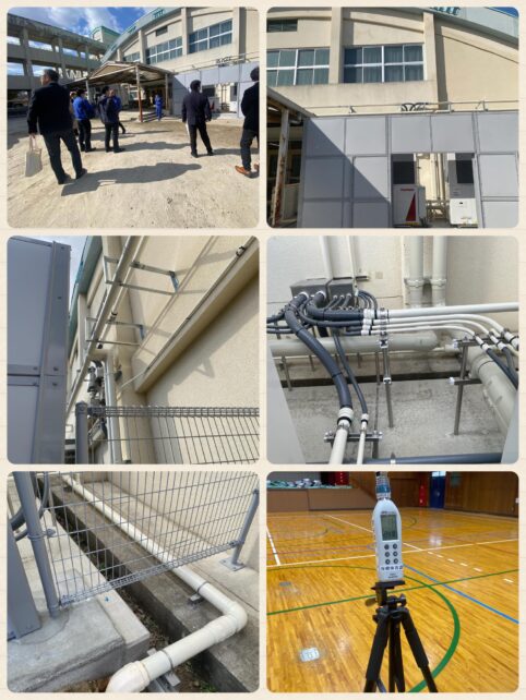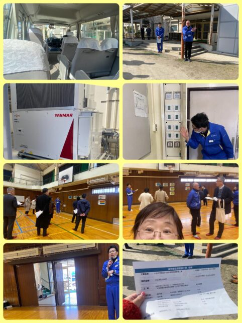 令和8年度から本格的な体育館空調整備が実施されるのですが、その先行実施として、立花中学校の体育館の空調設備を視察しました。